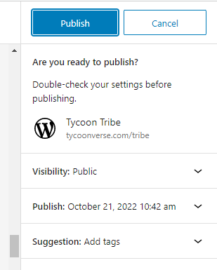 As the last step, you’ll be able to add tags. They allow your viewers to quickly find other posts that cover similar topics. You can quickly leave these sections blank without a system for categorizing tags.