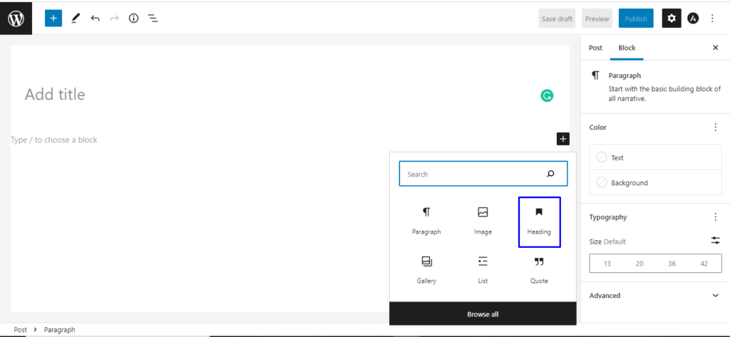 WordPress uses a block editor to add new text sections, which works just as you’d think: by creating various blocks. Paragraphs, pictures, and headings will all be organized.
