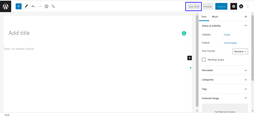 You’ve appeared at the blank canvas where you may add your creation (AKA your content). However, there are a few things to consider before beginning this process. Permanently save your work regularly. WordPress automatically stores your work, but it might not reload your most recent changes if you lose your internet connection. To save your work, click the “Save draft” button that is located in the upper right-hand corner of the screen.